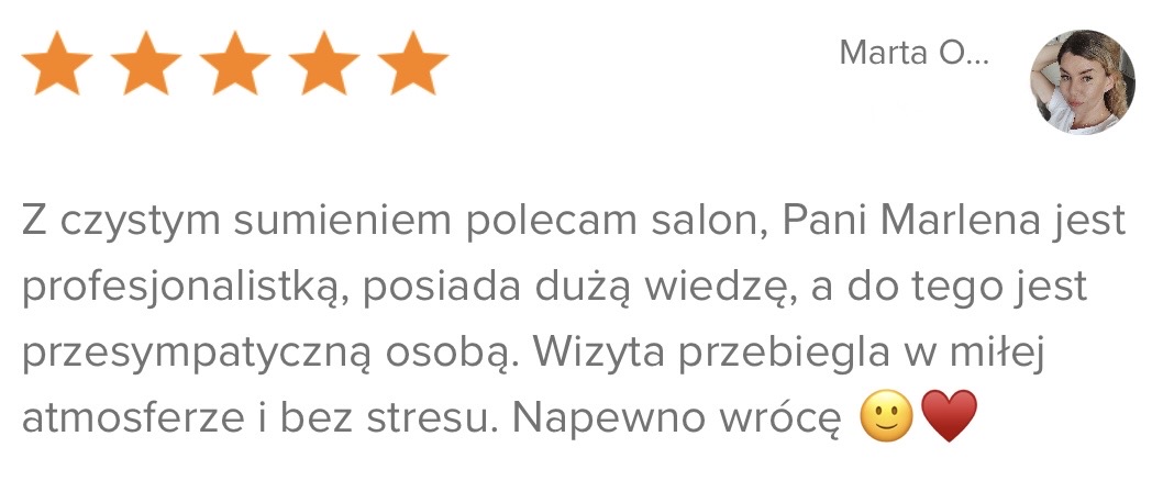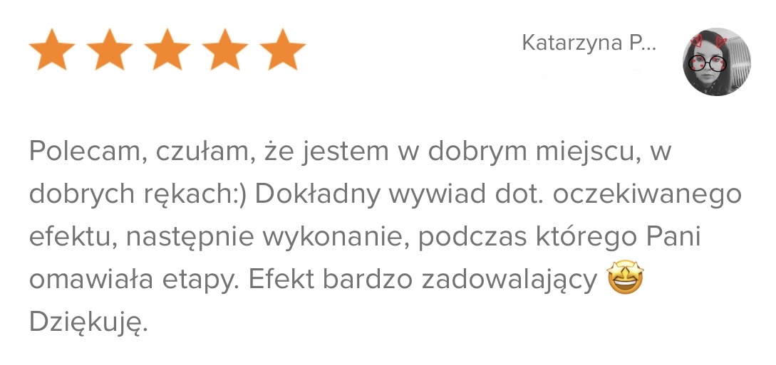 Zobacz autentyczne opinie klientek i efekty ich wizyt. Każda rekomendacja to potwierdzenie jakości, precyzji oraz indywidualnego podejścia.